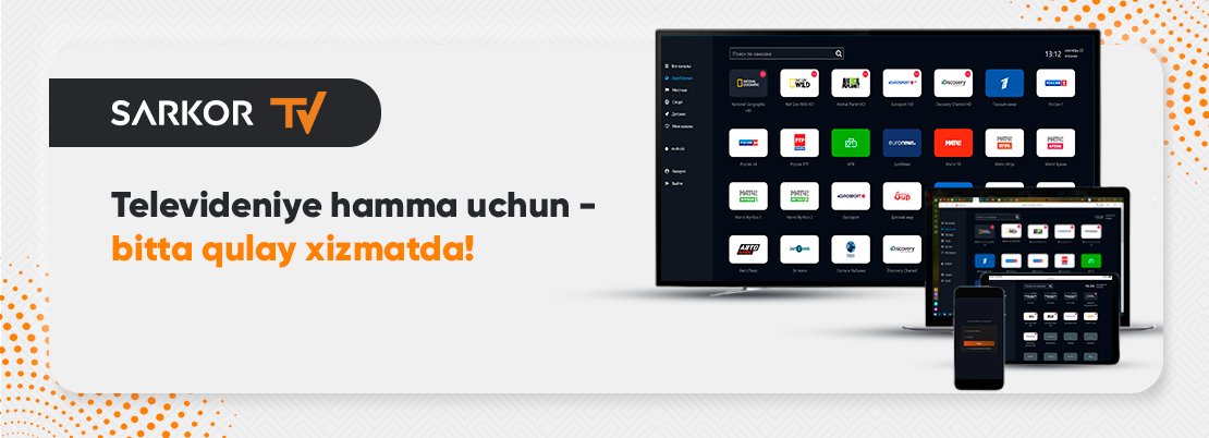 "Internet" xizmatiga birinchi marta ulanganingizda, Sarkor TV ilovalarini Android qurilmasiga o‘rnatish (shu jumladan tv pristavkalari) BEPUL amalga oshiriladi.